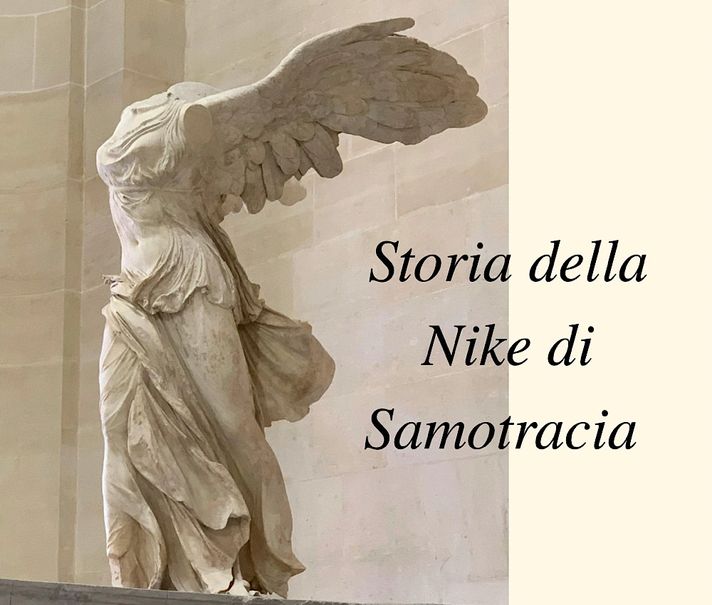 La Nike, era stata creata tra il 200 ed il 180 a.C per essere posizionata in cima al tempio dei Grandi Dei Cabini, gruppi di antiche divinità ctonie, forse di origine frigia o tracia, i cui culti misterici si svolgevano sull’isola di Samotracia, la quale era divenuta un ricco centro economico e culturale, il tempio stesso, a più piani e di grandi dimensioni,era stato voluto dagli abitanti dell’isola per commemorare la vittoria nella battaglia dell’Eurimedonte nella guerra siriaco-romana.