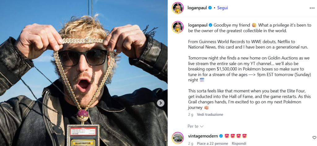 Atsuko Nishida, la co-creatrice di Pikachu e di altri personaggi iconici del franchise, ha realizzato l’illustrazione di questa carta. Questo rende la carta non solo rara, ma anche significativa dal punto di vista storico. Logan Paul, inoltre, ha trasformato l’oggetto in un vero simbolo personale, perché la indossava come collana in occasioni pubbliche legate al mondo del wrestling.