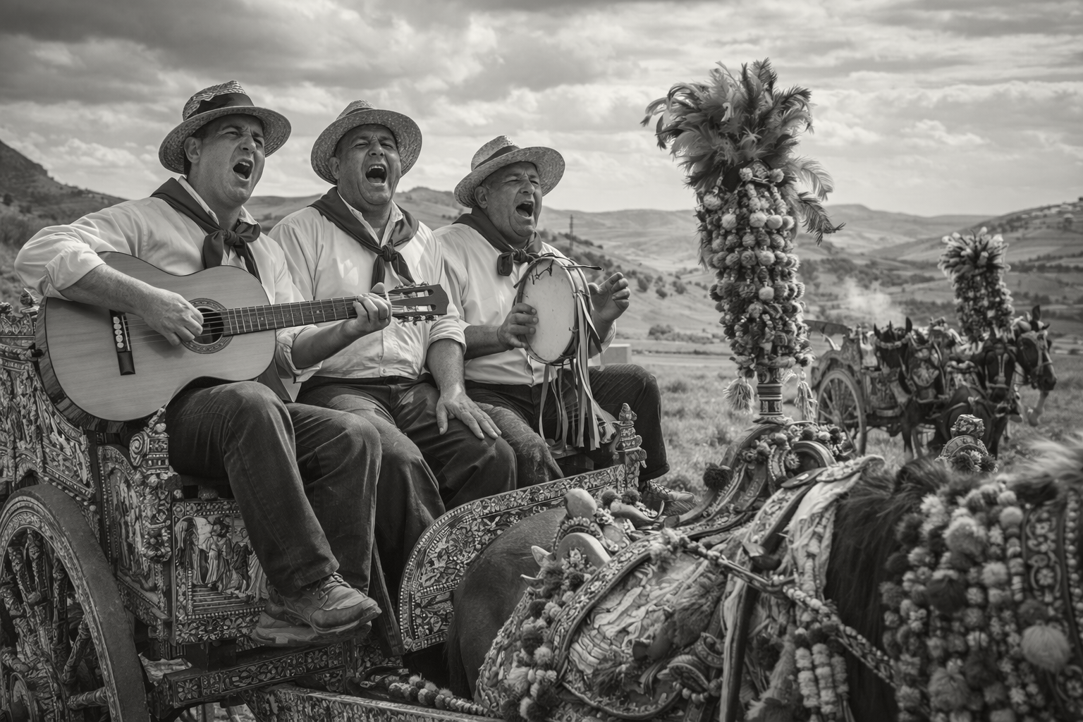 Intonato lungo le strade o nelle soste, il canto dei carrettieri siciliani racconta storie d’amore, di partenze e di vita quotidiana.