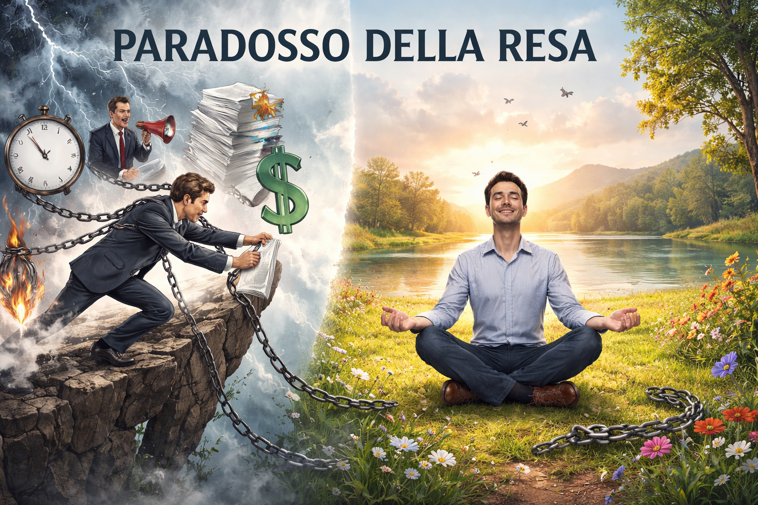 Il paradosso della resa emerge anche nei processi decisionali: cercare di avere controllo su ogni variabile, analizzare e prevenire ogni errore può portare a una vera e propria paralisi decisionale. Il Premio Nobel, lo psicologo Daniel Kahneman, ha mostrato che “quando la mente è sotto pressione, tende a semplificare, non a ragionare meglio”.