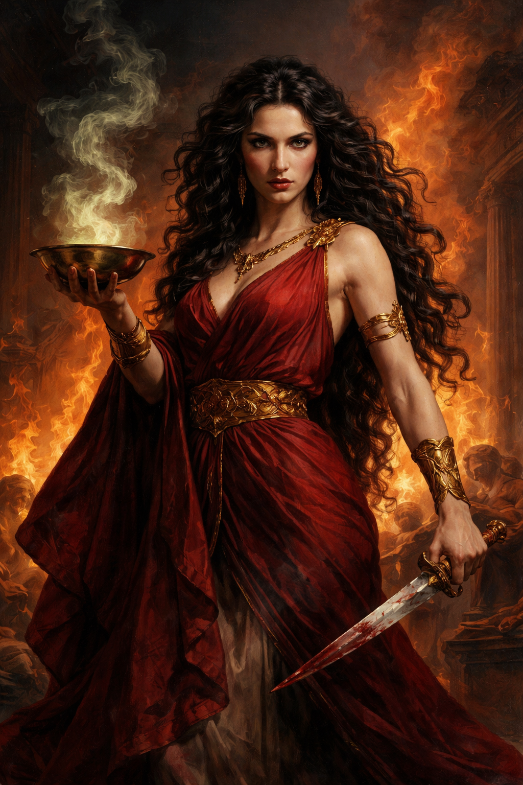 Infine, il fuoco possiede un valore rituale e purificatorio nella cultura greca. La combustione del palazzo reale può essere letta come rovesciamento dell’ordine politico di Corinto: ciò che avrebbe dovuto garantire stabilità e continuità viene consumato da un’energia che nasce dall’esclusione e dall’ingiustizia.