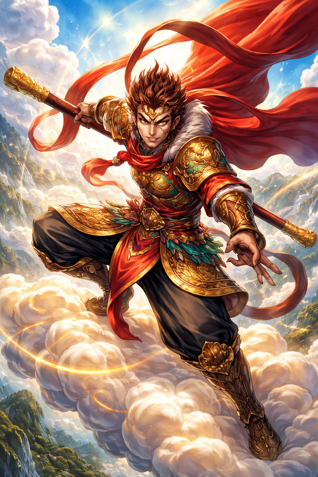 Secondo la leggenda, il Re delle Scimmie nasce da una pietra primordiale generata dalle forze cosmiche. Fin dalla nascita dimostra una natura straordinaria: intelligenza acuta, forza eccezionale e un carattere ribelle.