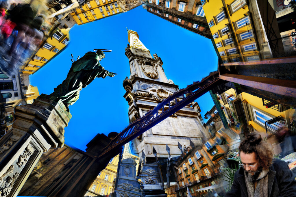 Luigi: Io, per la mostra, ho rappresentato quattro epoche di Napoli, dall’antichità fino ad oggi. Ognuno di noi ha portato la propria visione della città e di quello che offre.