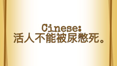 Cinese: 活人不能被尿憋死。Huórénbùnéngbèiniàobiēsĭ. Non si può morire per aver trattenuto la pipì. Questo detto cinese indica che non ci si deve preoccupare troppo per le cose poco importanti. Testalo: «昨天我没做我的作业!»