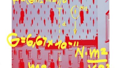 Golconda (1953) – Magritte Se volete fare un ripassino di fisica base ecco alcune formule applicate ad opere d’arte famose. Qui viene applicata la formula per calcolare l’Attrazione Gravitazionale tra due corpi, la quale comprende anche la Cost